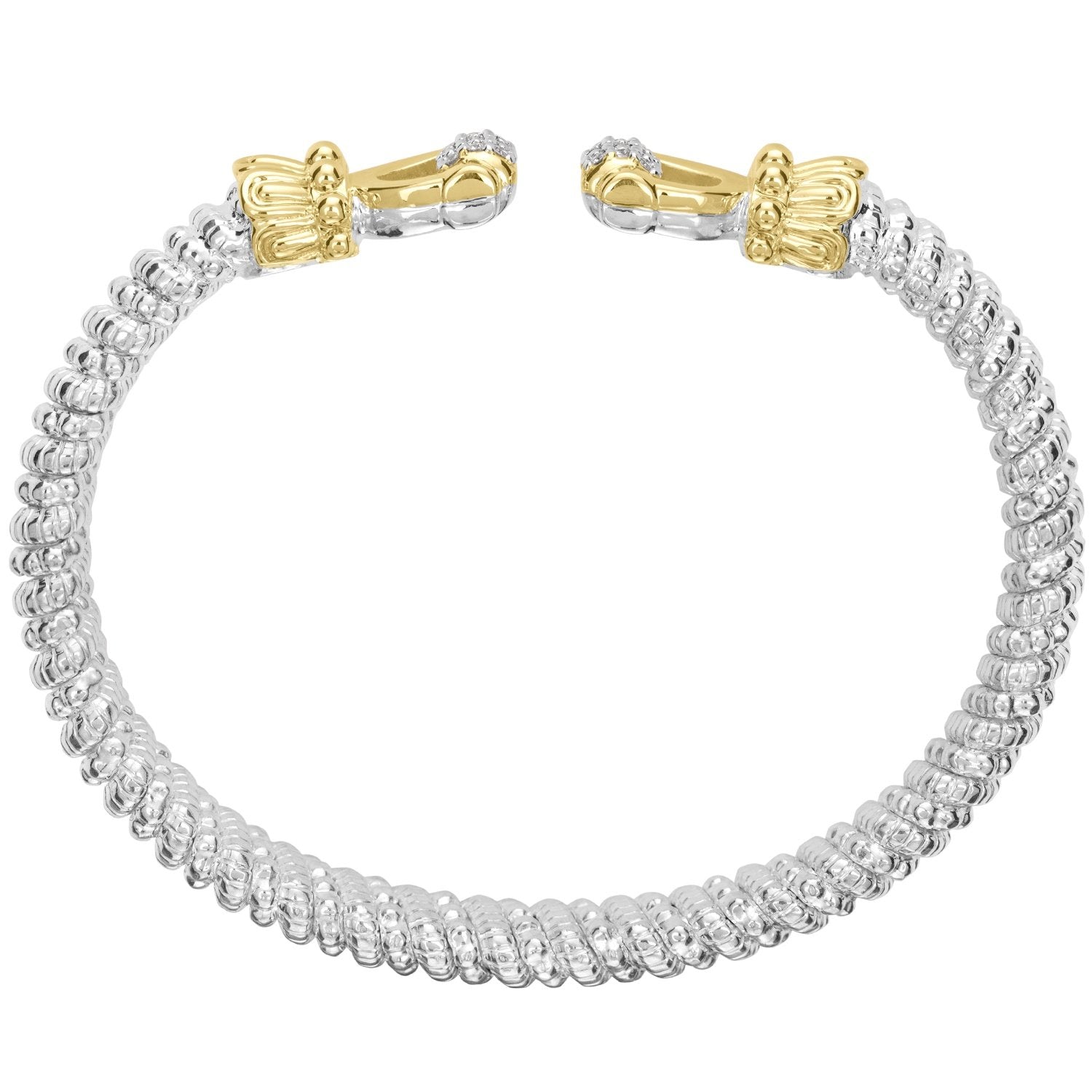 14K Gold and Sterling Silver, Diamond Horsebit Stackable Bracelet | 6MM