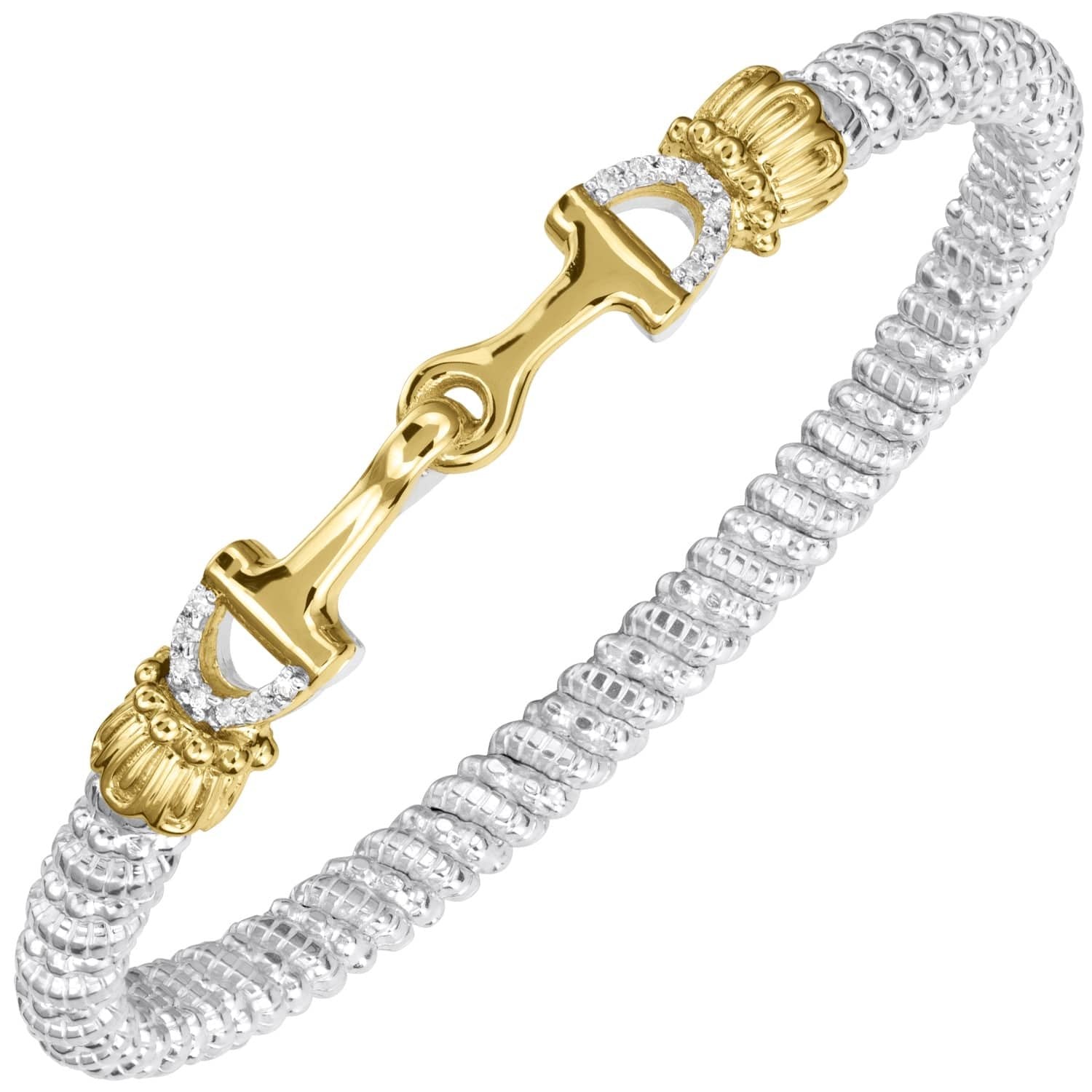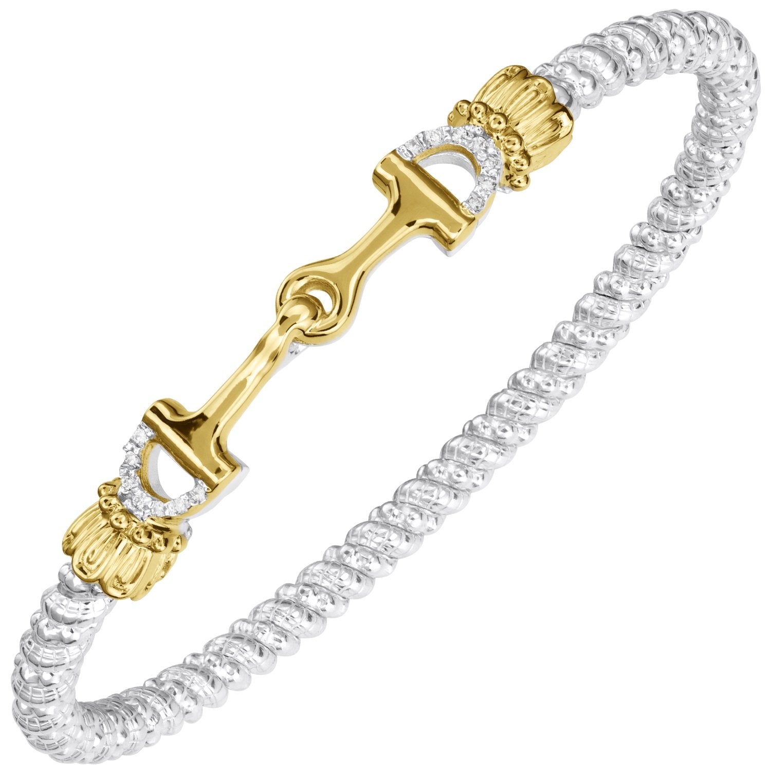 14K Gold and Sterling Silver, Diamond Horsebit Stackable Bracelet | 4MM