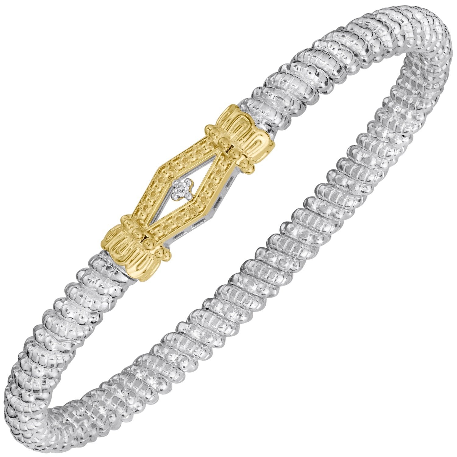 14K Gold and Sterling Silver, Diamond Stackable Bracelet
