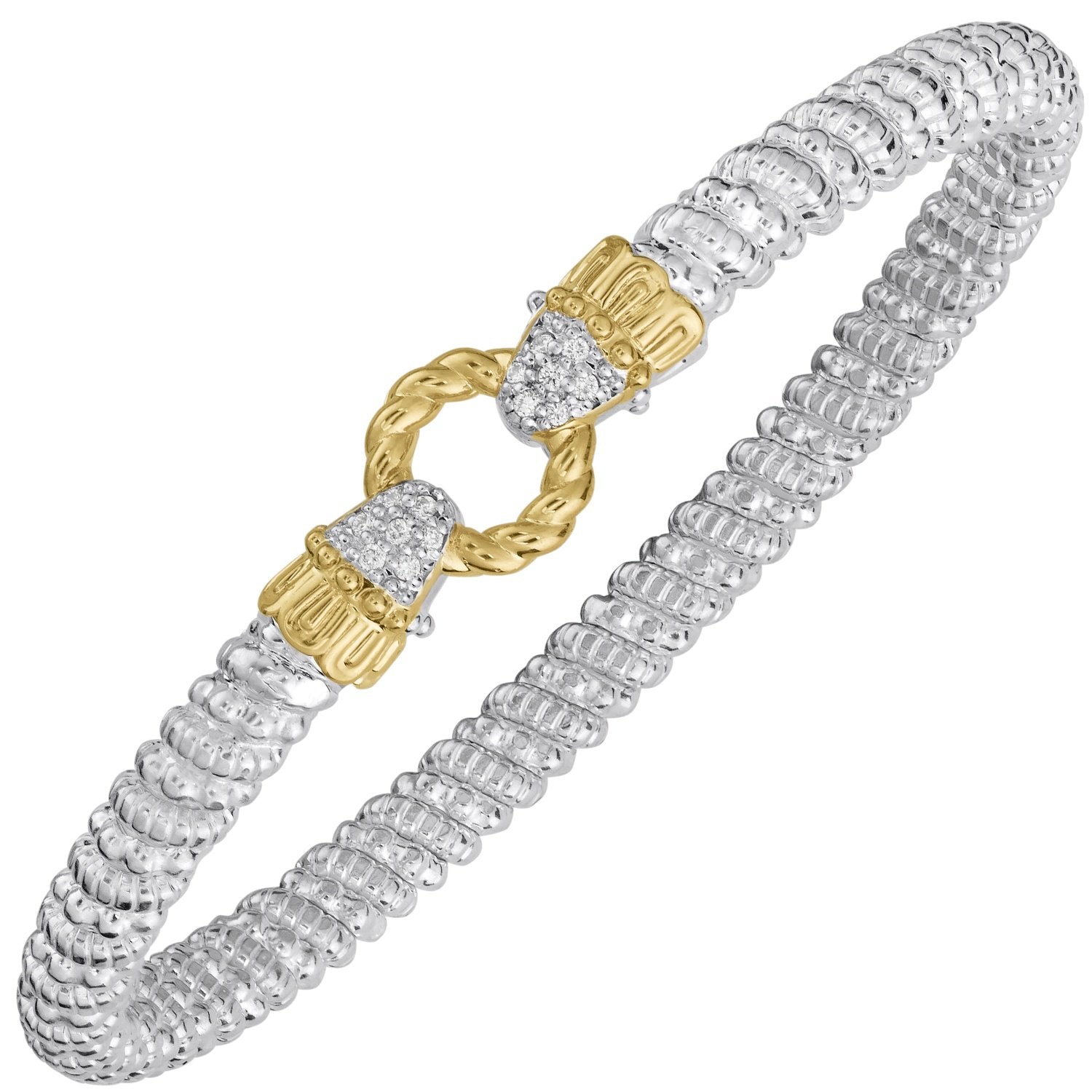 14K Gold and Sterling Silver, Diamond Stackable Bracelet
