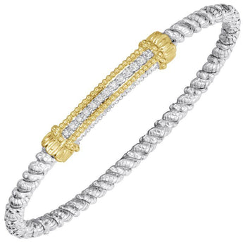 14K Gold and Sterling Silver, Diamond Stackable Bracelet | 4MM