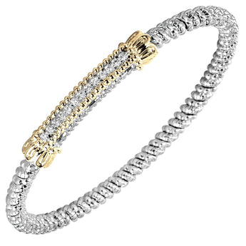 14K Gold and Sterling Silver, Diamond Stackable Bracelet | 4MM