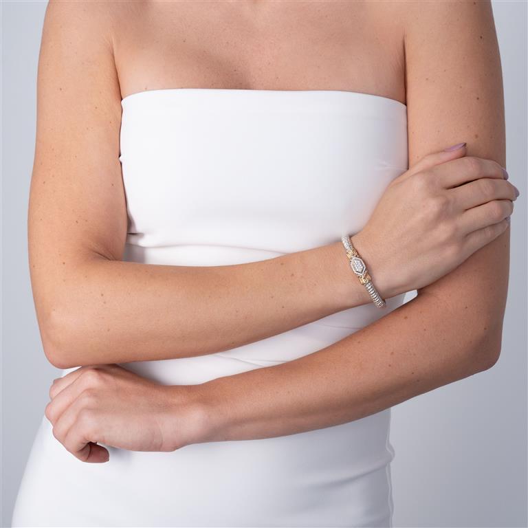 14K Gold and Sterling Silver, Diamond Stackable Bracelet | 4MM