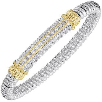 14K Gold and Sterling Silver, Diamond Stackable Bracelet | 6MM