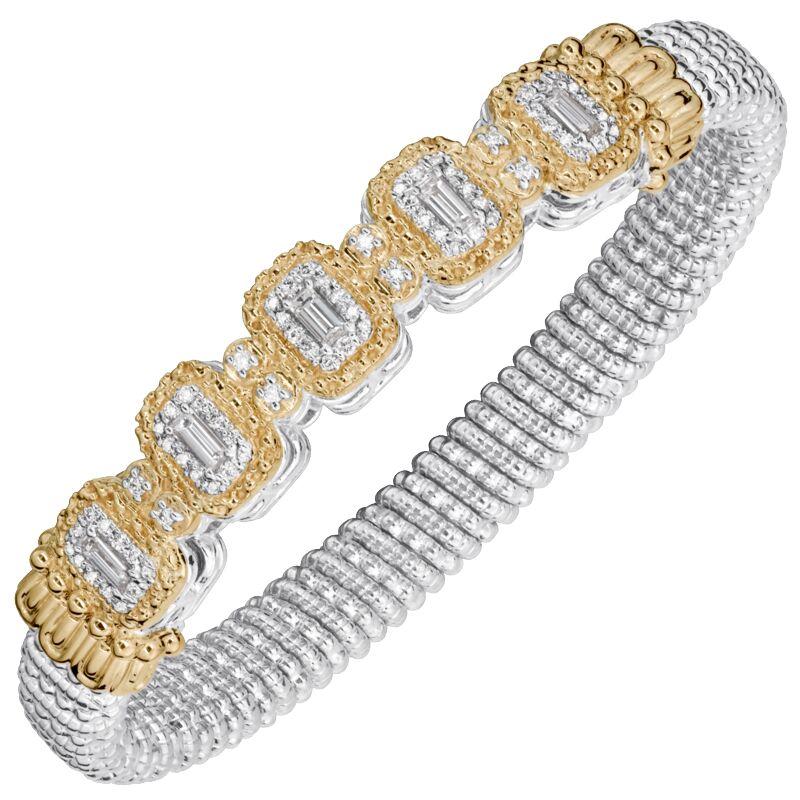 14K Gold and Sterling Silver, Diamond Stackable Bracelet | 8MM