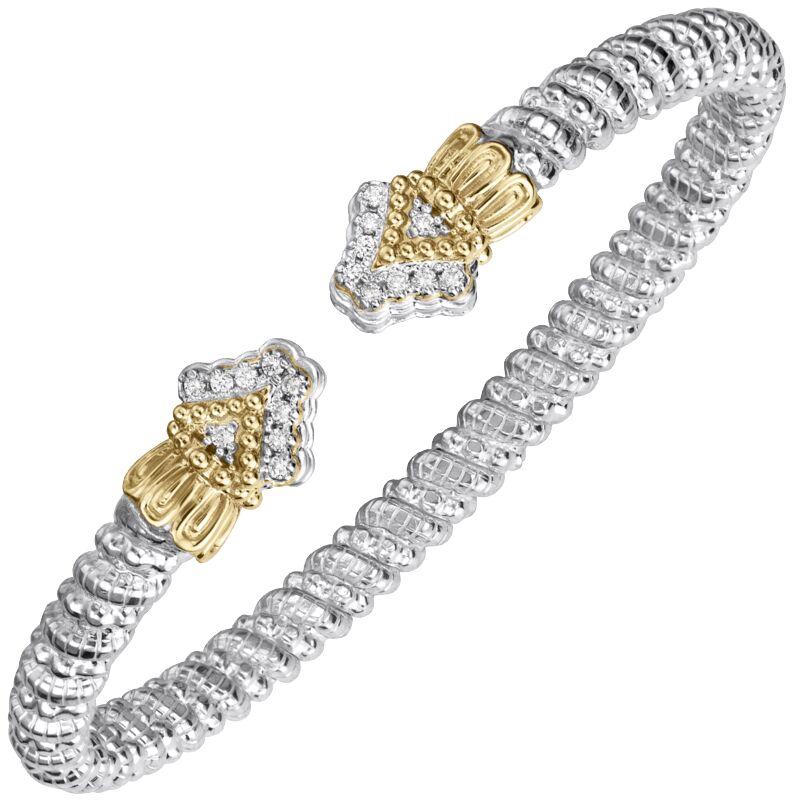 14K Gold and Sterling Silver, Diamond Stackable Cuff Bracelet | 4MM