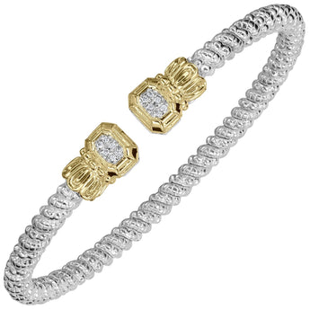 Dazzling diamonds and regal crown motifs make a refined statement on our open bracelet. Crafted in 14K gold and sterling silver, a Moiré Beaded® pattern enhances the look with exquisite textural detailing.