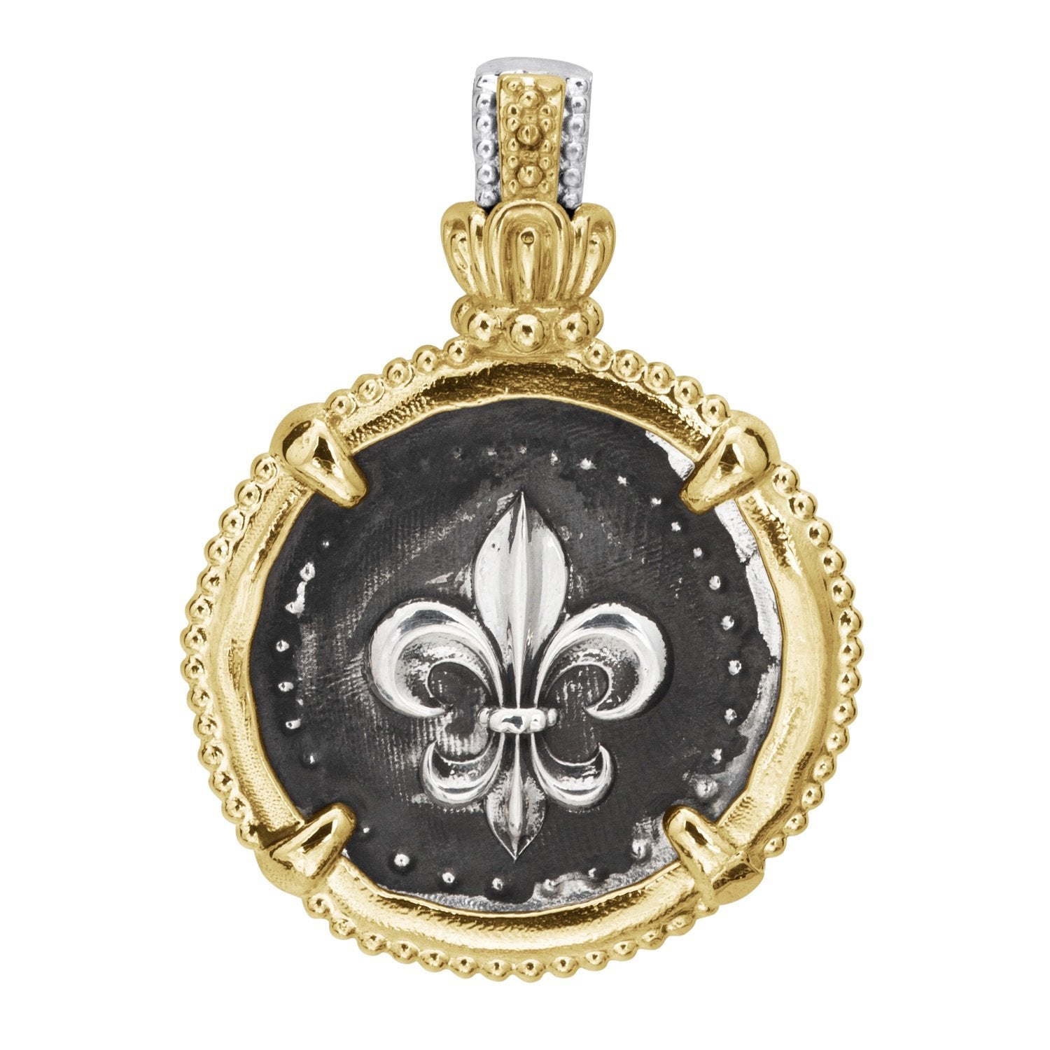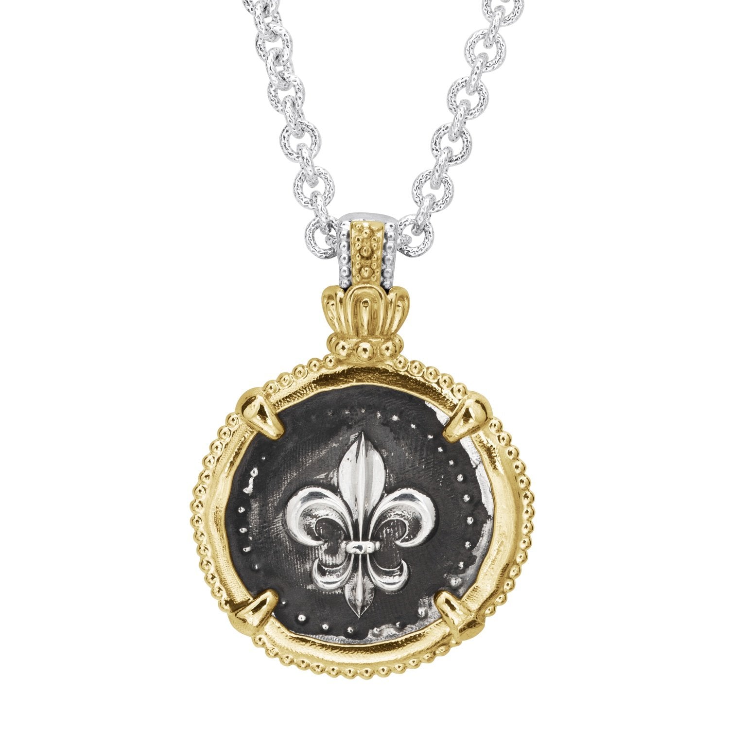 14K Gold and Sterling Silver, Fleur-De-Lis Coin Pendant