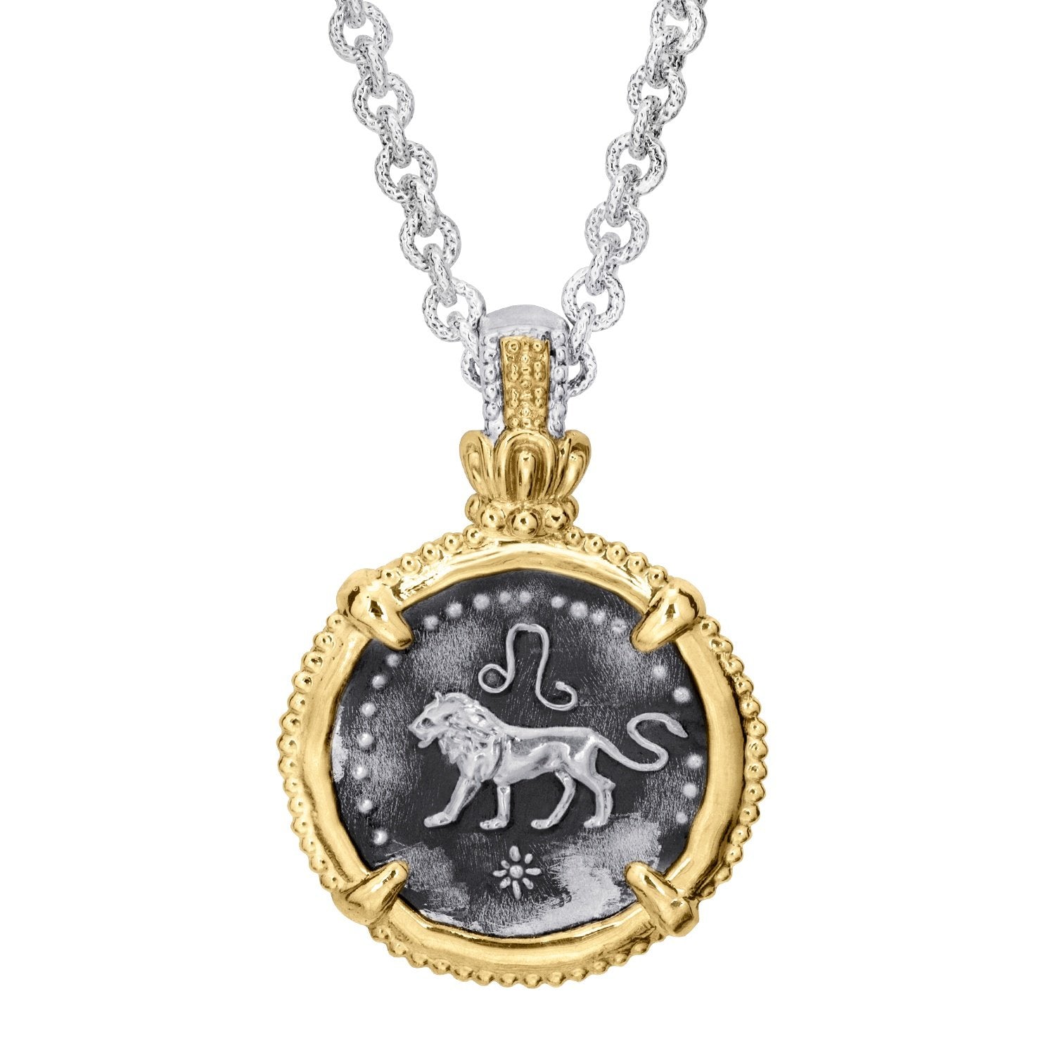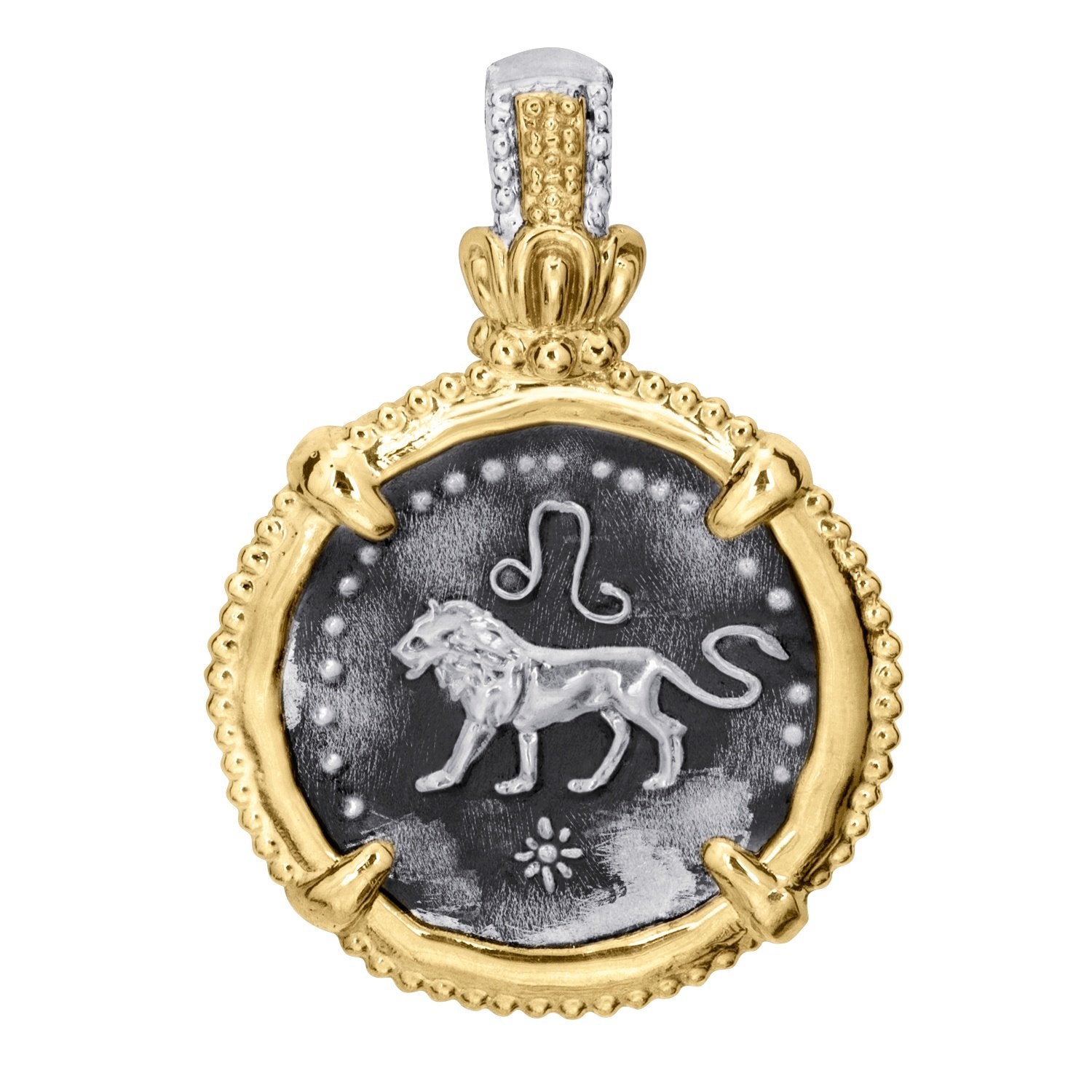14K Gold and Sterling Silver, 'Leo' Zodiac Coin Pendant