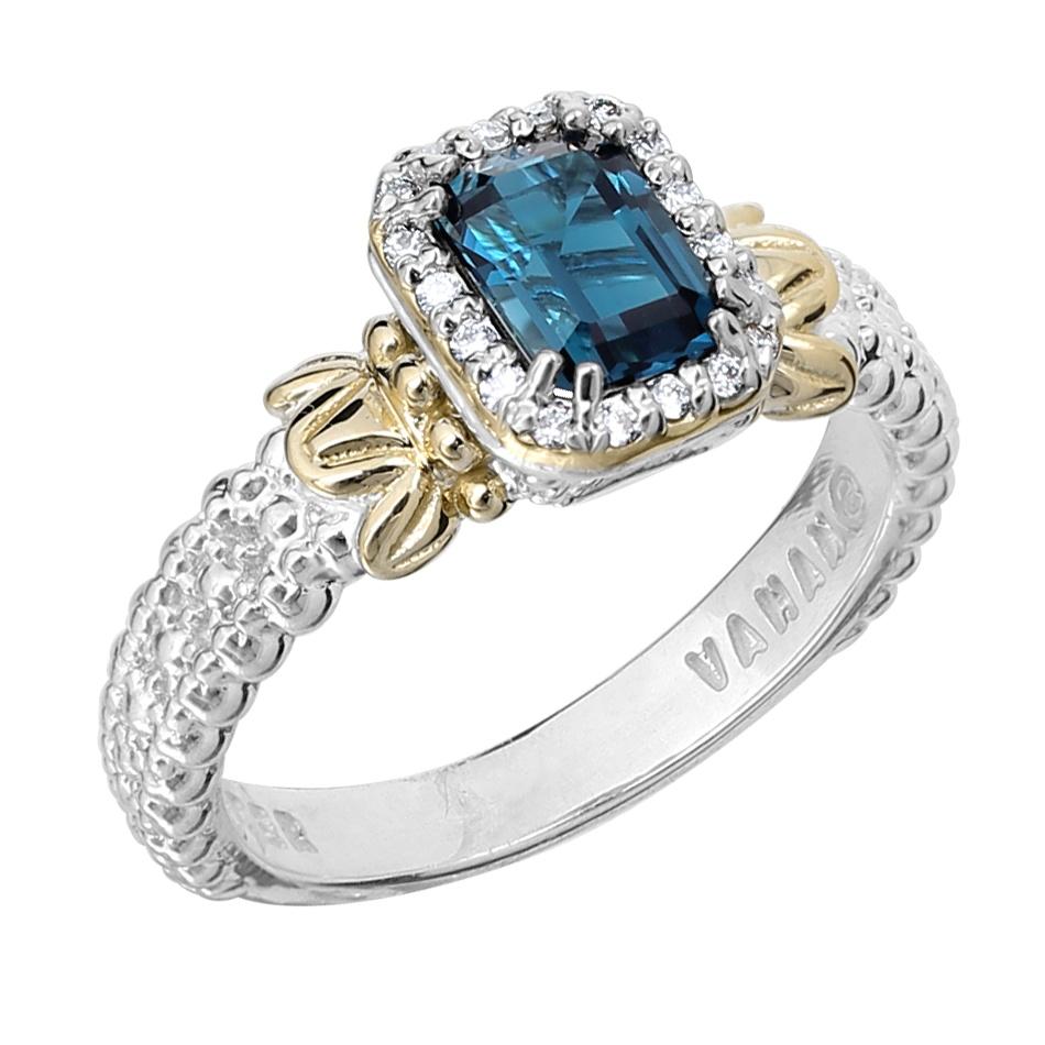 14K Gold and Sterling Silver, London Blue Topaz and Diamond Ring