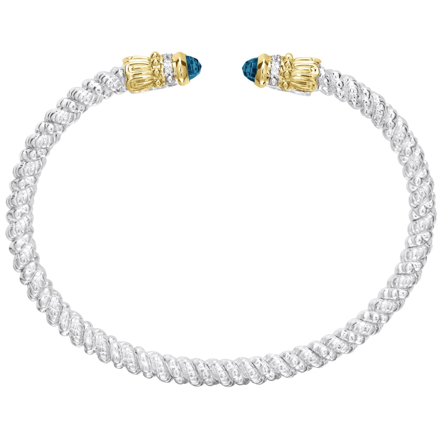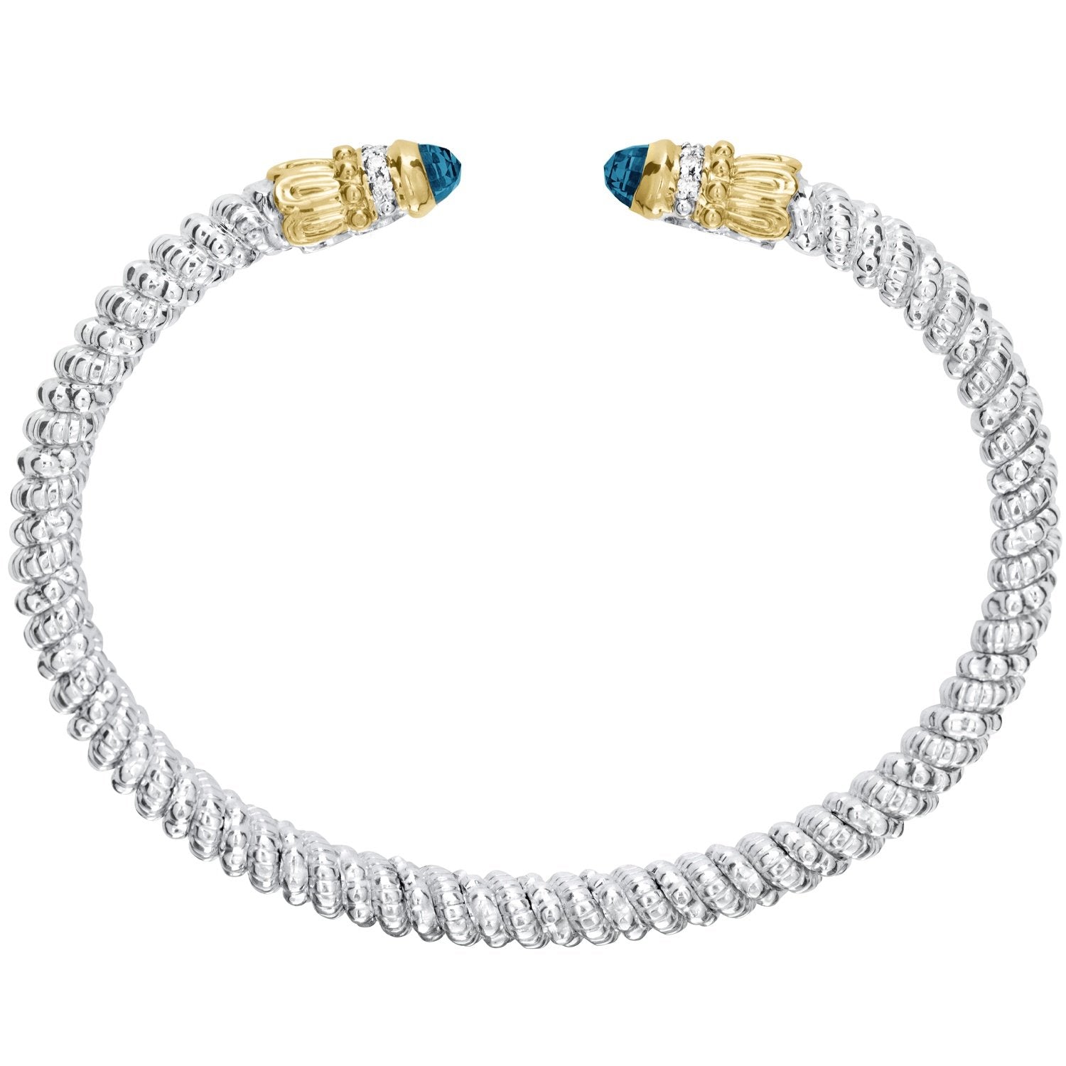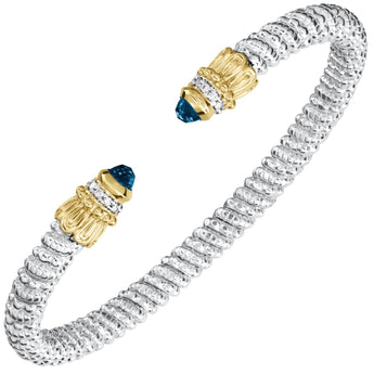 14K Gold and Sterling Silver, London Blue Topaz and Diamond Stackable Cuff Bracelet | 4MM