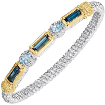 14K Gold and Sterling Silver, London Blue Topaz, Sky Blue Topaz and Diamond Stackable Bracelet | 4MM