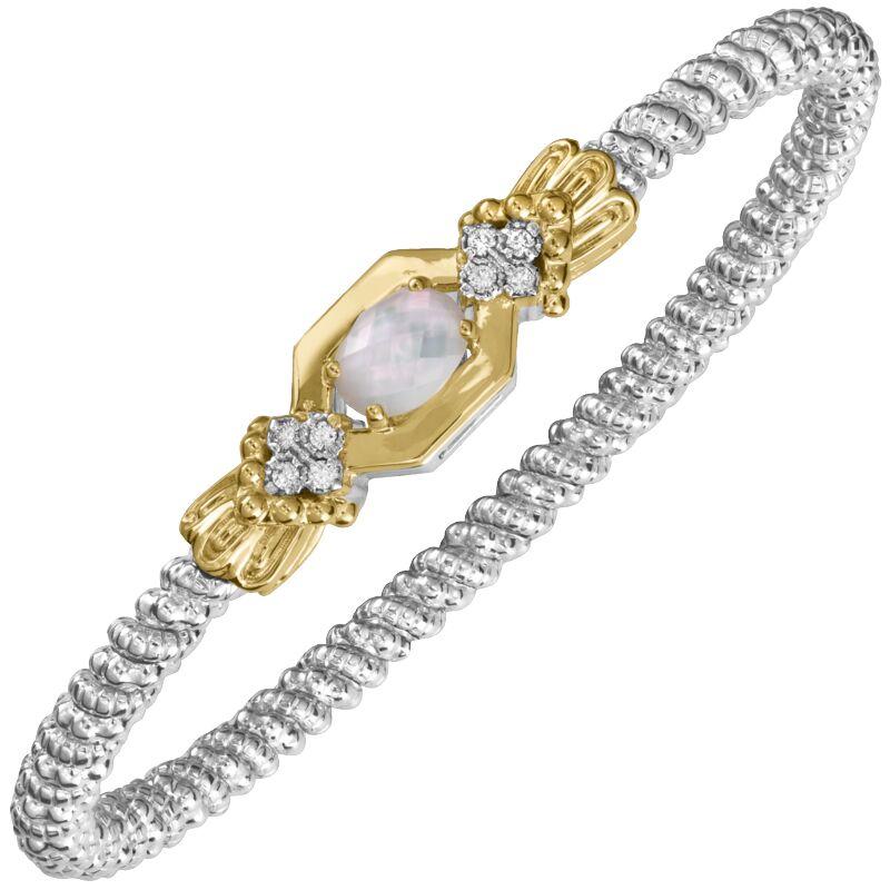 14K Gold and Sterling Silver, Mother of Pearl and Diamond Stackable Bracelet | 3MM