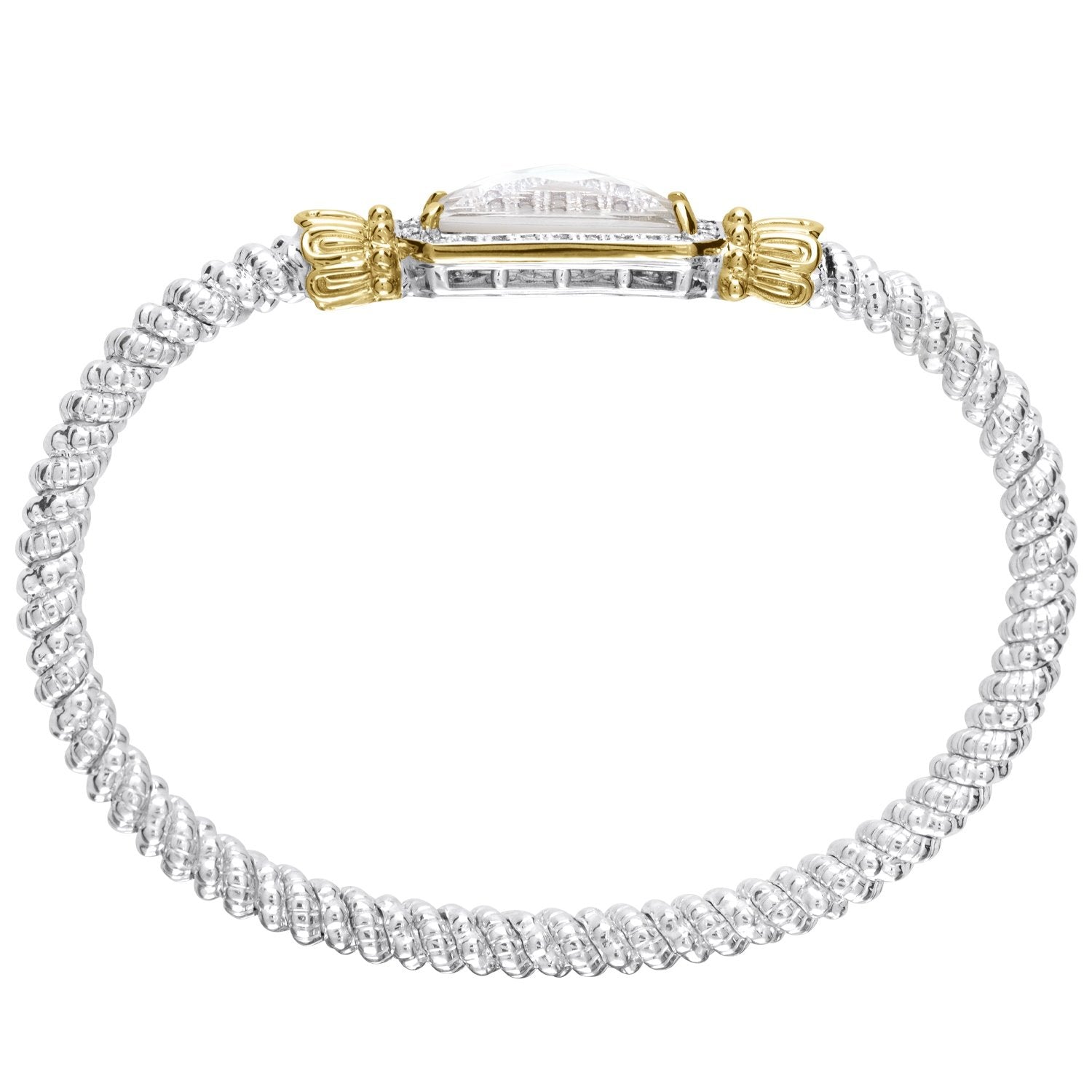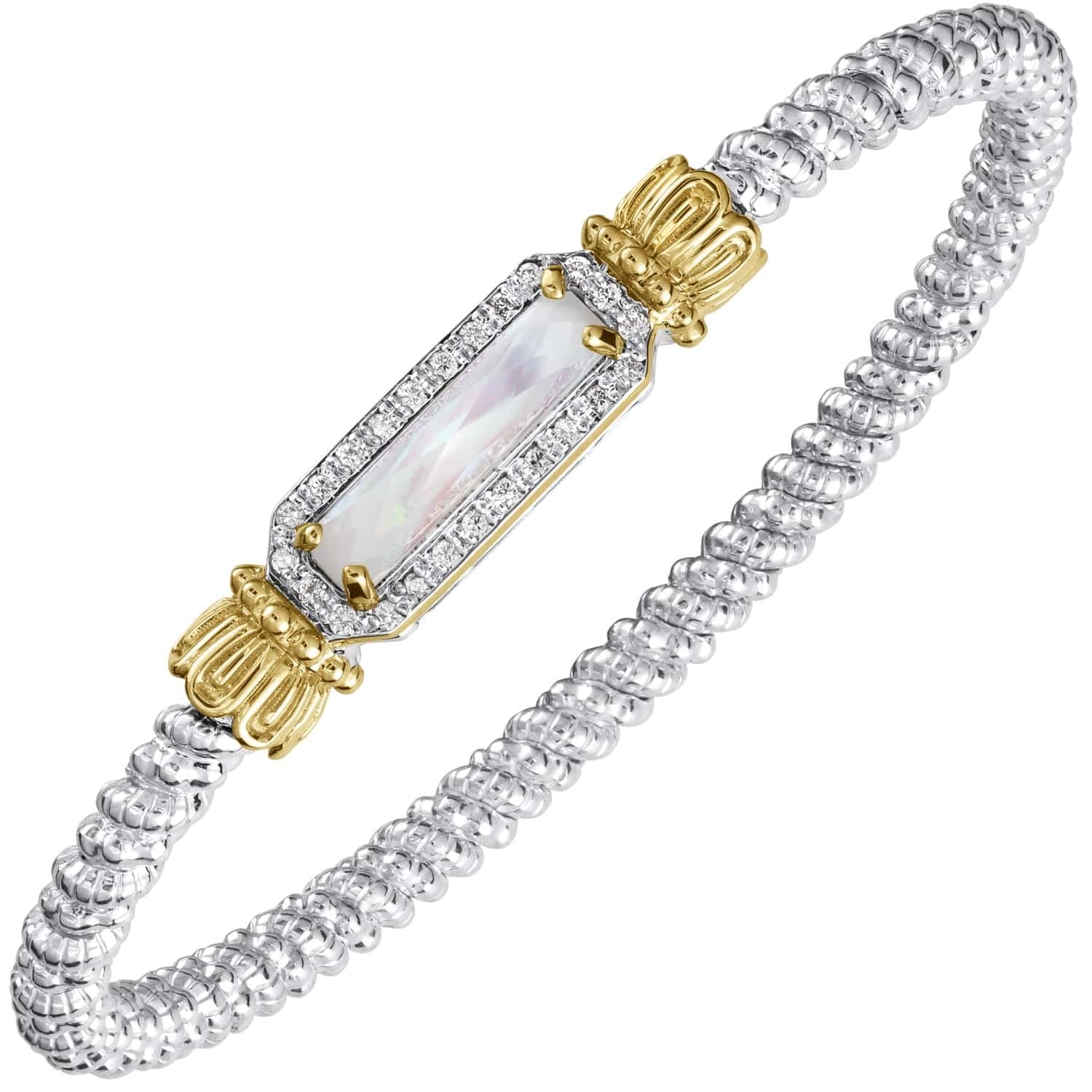 14K Gold and Sterling Silver, Mother of Pearl Bar and Diamond Stackable Bracelet | 3MM