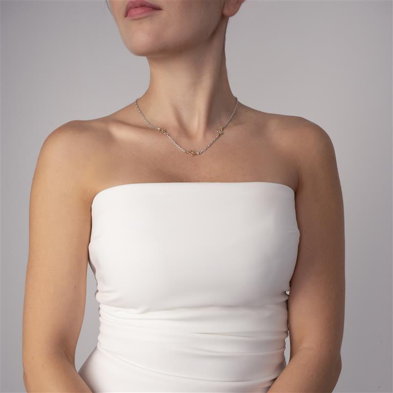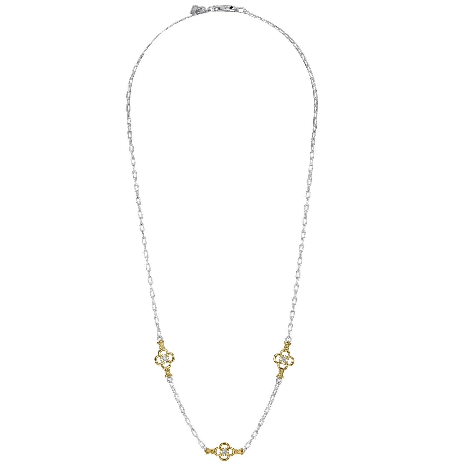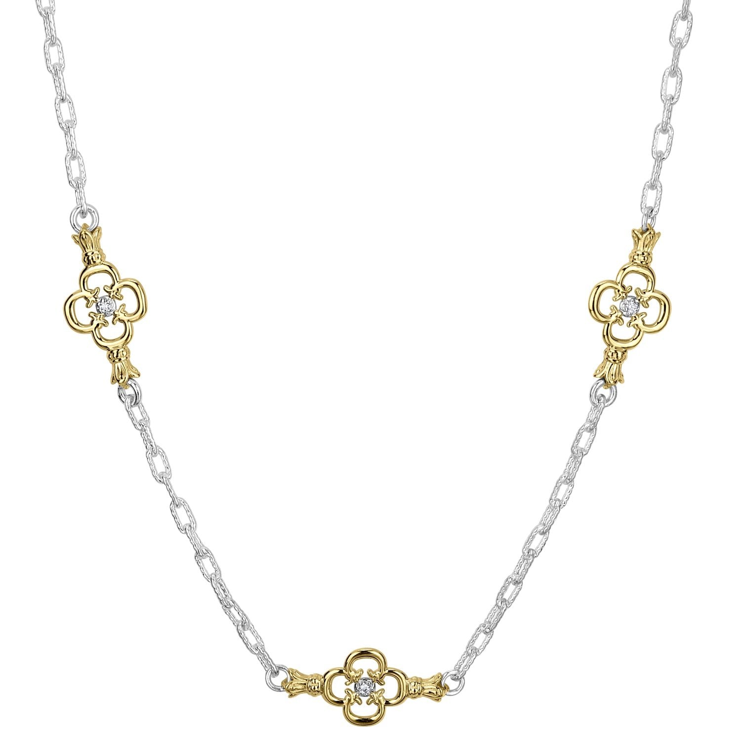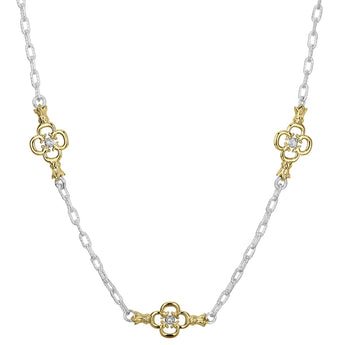 14K Gold and Sterling Silver, Multi-Clover Diamond Necklace