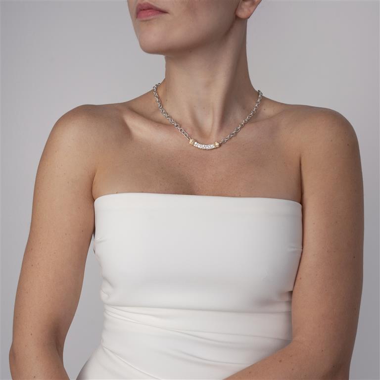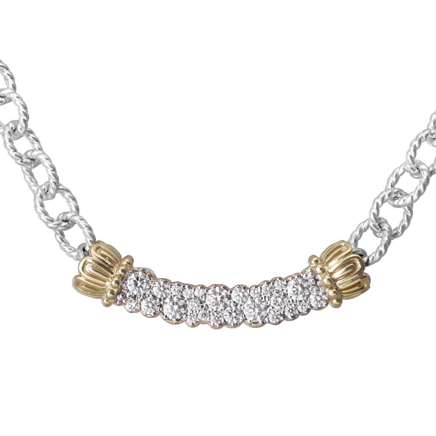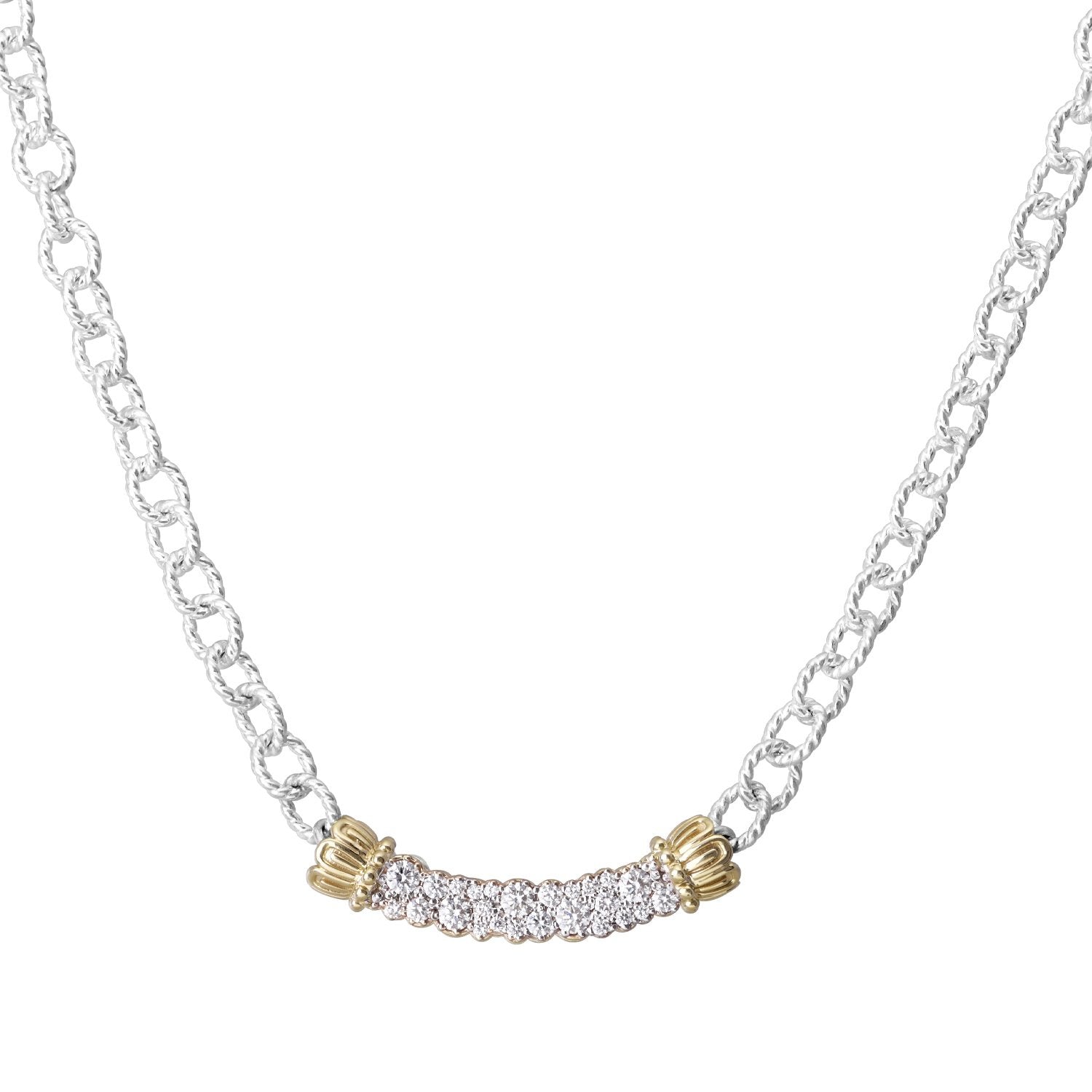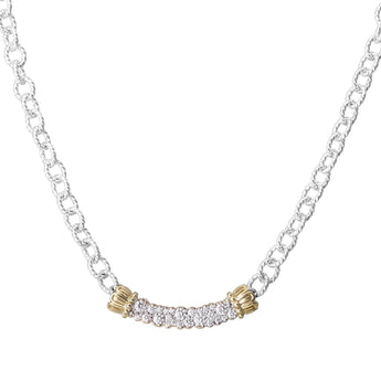 14K Gold and Sterling Silver, Multi-Pavé Diamond Bar Necklace