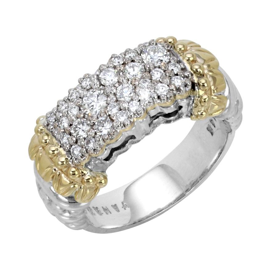 14K Gold and Sterling Silver, Multi-Pavé Diamond Ring