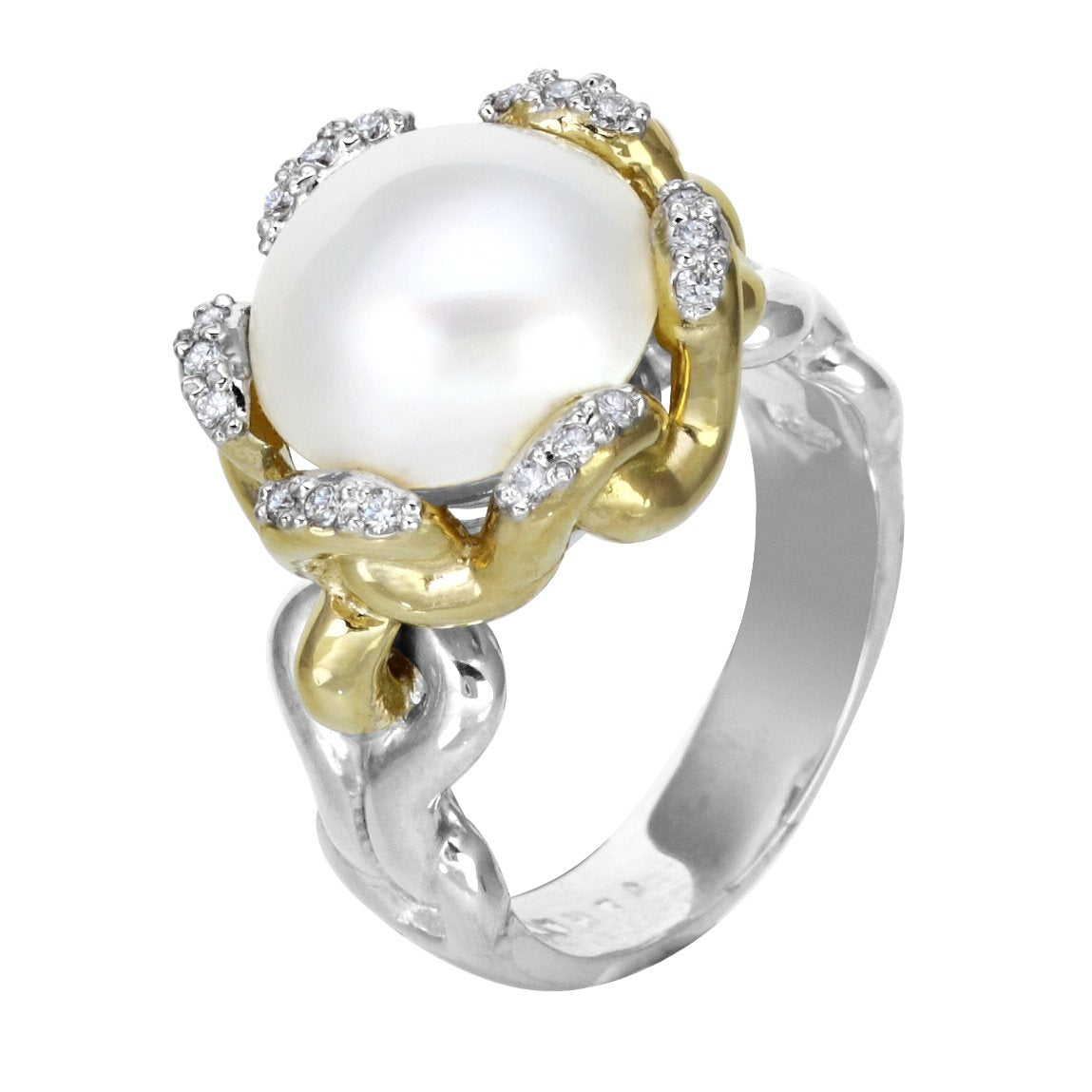 14K Gold and Sterling Silver, Pearl and Diamond Ring
