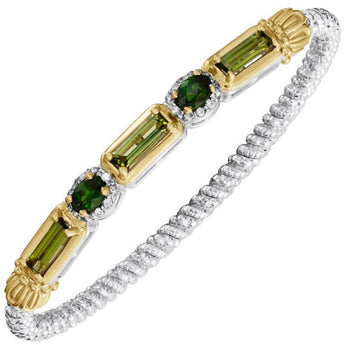 14K Gold and Sterling Silver, Peridot, Chrome Diopside and Diamond Stackable Bracelet | 3MM