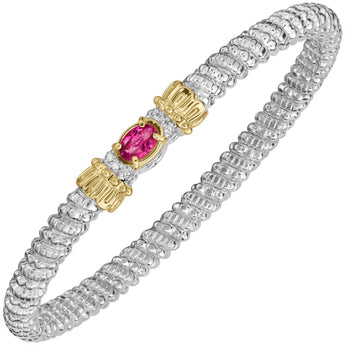 14K Gold and Sterling Silver, Pink Topaz and Diamond Stackable Bracelet