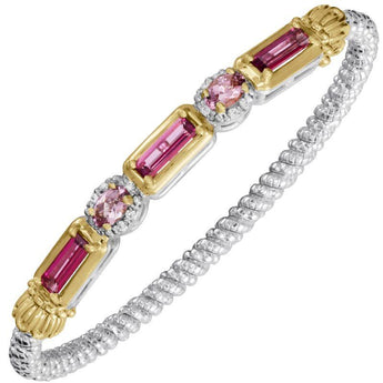 14K Gold and Sterling Silver, Pink Topaz, Morganite and Diamond Stackable Bracelet | 3MM