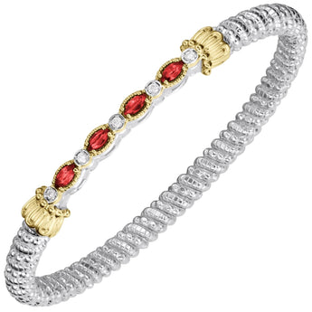 14K Gold and Sterling Silver, Ruby and Diamond Stackable Bracelet | 4MM