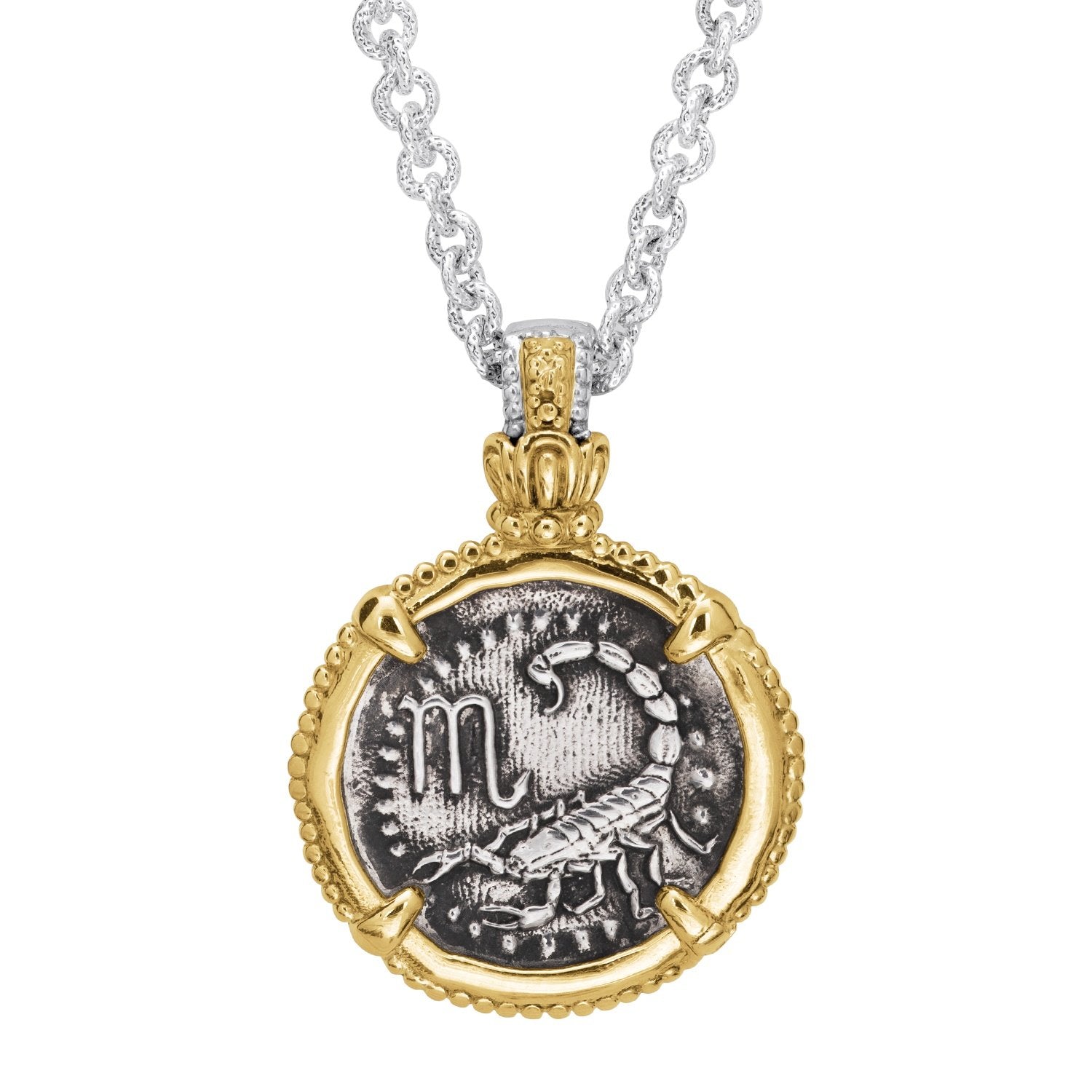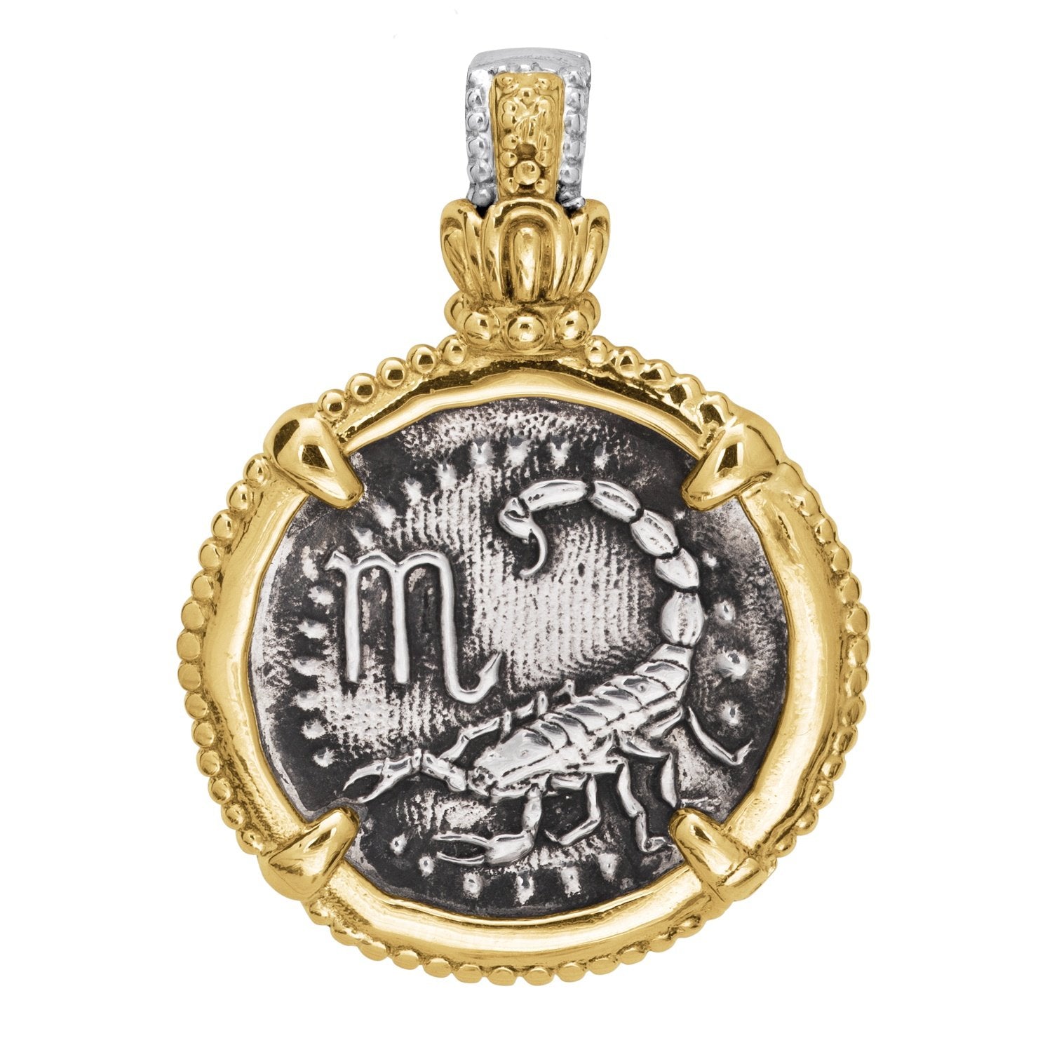 14K Gold and Sterling Silver, 'Scorpio' Zodiac Coin Pendant