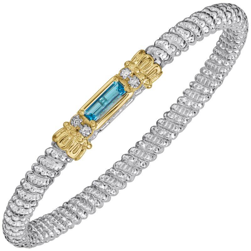 14K Gold and Sterling Silver, Sky Blue Topaz and Diamond Stackable Bracelet