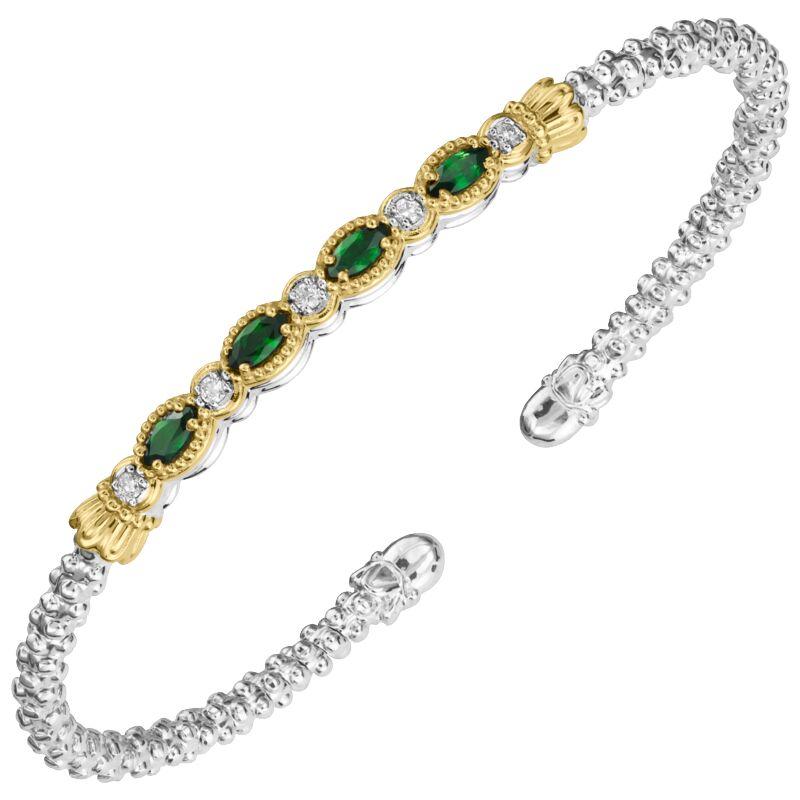 14K Gold and Sterling Silver, Tsavorite Garnet and Diamond Stackable Bracelet | 2MM