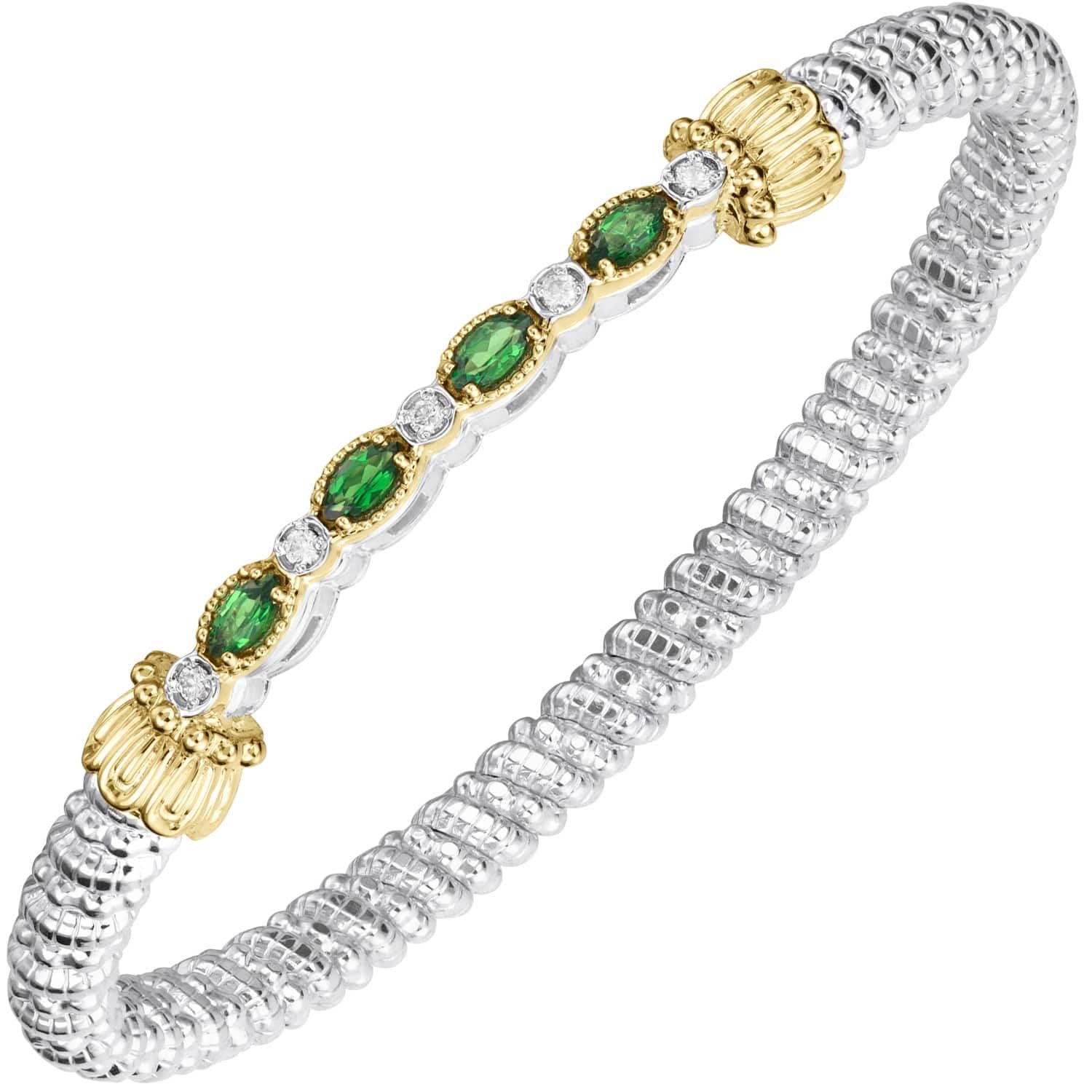 14K Gold and Sterling Silver, Tsavorite Garnet and Diamond Stackable Bracelet | 4MM