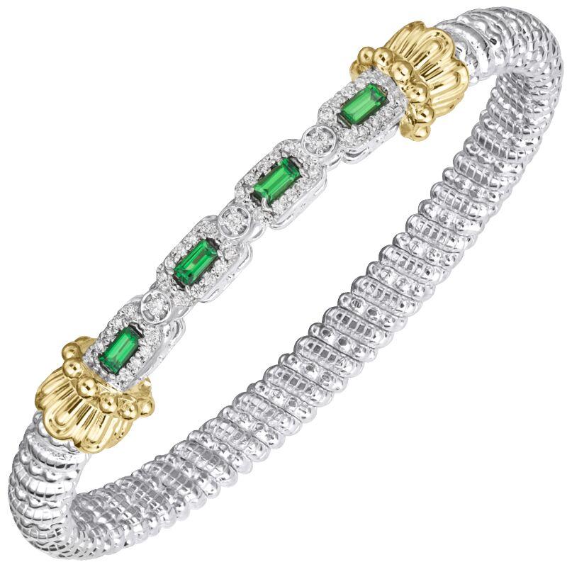 14K Gold and Sterling Silver, Tsavorite Garnet and Diamond Stackable Bracelet | 6MM