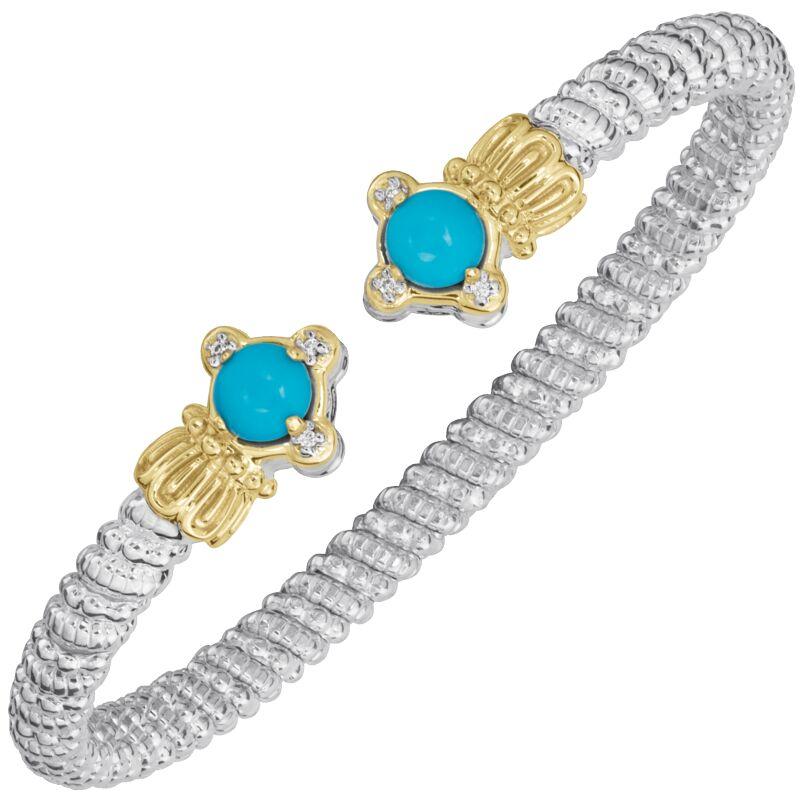 14K Gold and Sterling Silver, Turquiose and Diamond Stackable Cuff Bracelet | 4MM