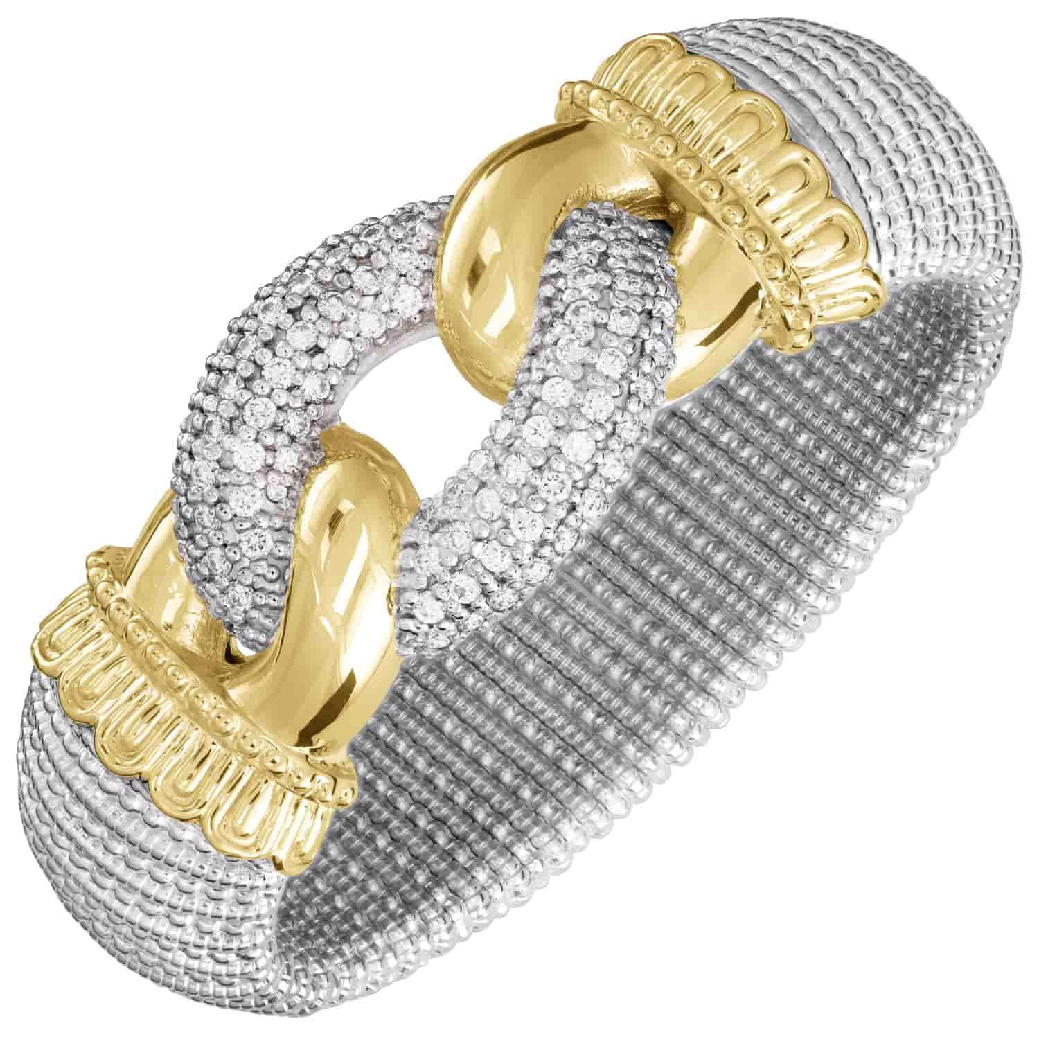 14K Gold and Sterling Silver, Diamond Bracelet | 22MM