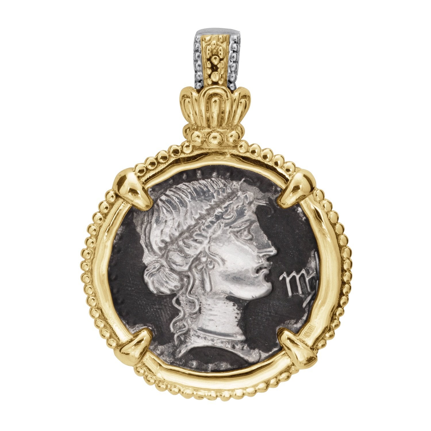 14K Gold and Sterling Silver, 'Virgo' Zodiac Coin Pendant