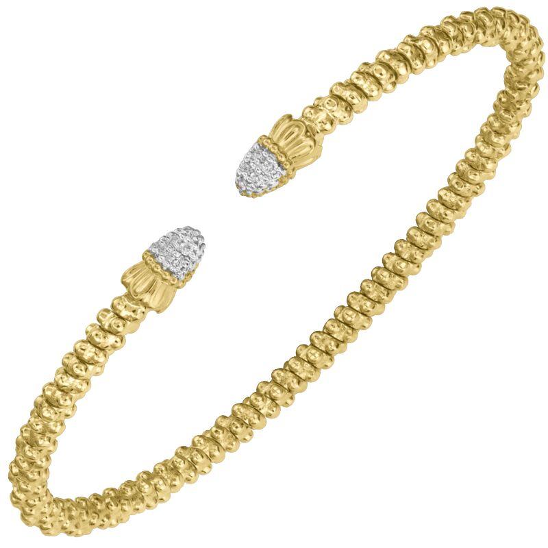 Accented by a Moiré Beaded® pattern and shimmering diamonds set in 14K gold, our elegant 2MM petite stackable bracelet features an open silhouette. Whether paired with other bangles from VAHAN's collection or worn as a standalone piece, it enhances any look.